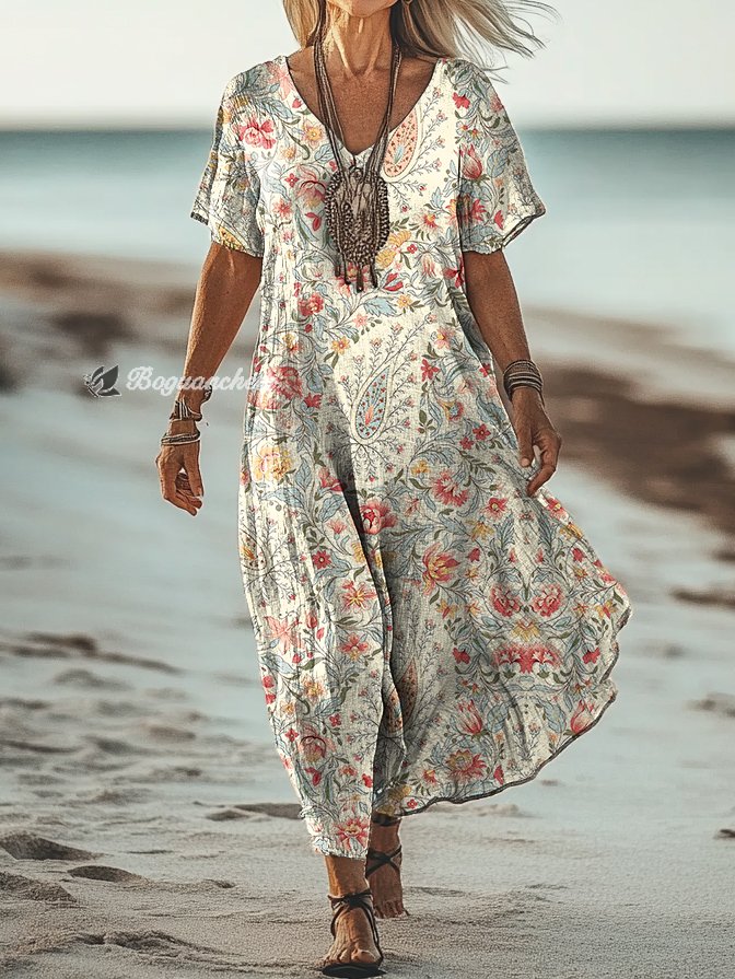 Gender: For Women Style: Casual Fit Type:FIt Shirt Length: Regular Sleeves Length: Short Sleeve Collar: V-Collar Material:Cotton Material Stretch: No Stretch Pocket :Side poctket Weight: 0.300kg Package:1 x Dress