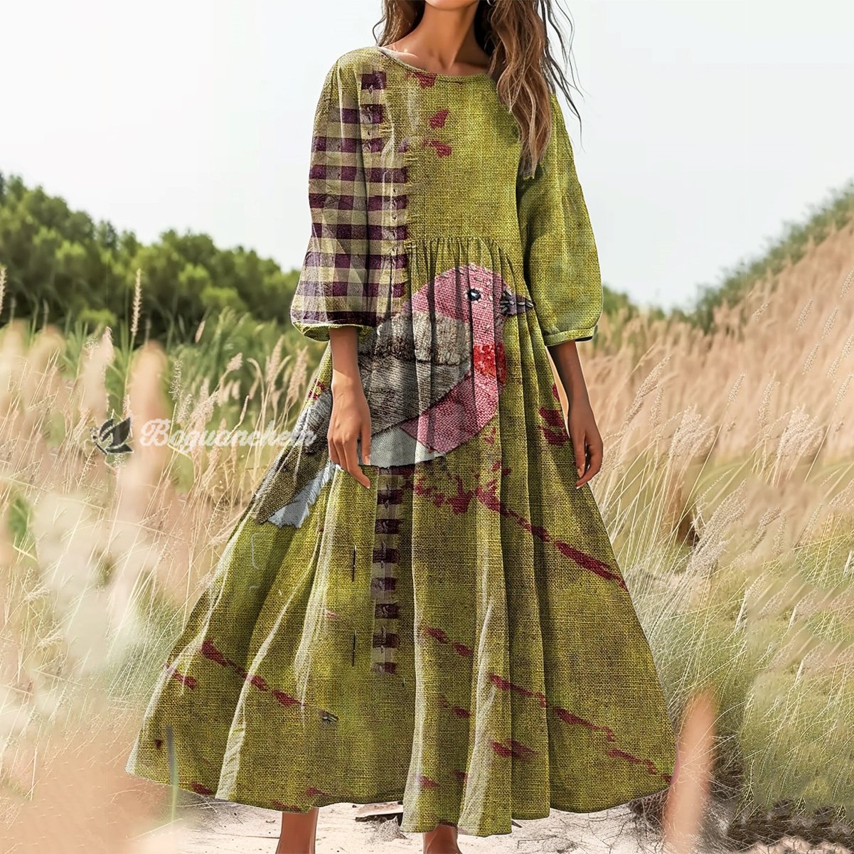 Gender: For Women Style: Casual Fit Type:FIt Shirt Length: Regular Sleeves Length:3/4 Sleeve Collar: Round Collar Material: 100%Cotton Material Stretch: No Stretch Pocket :Side poctket Weight: 0.300kg Package:1 x Dress