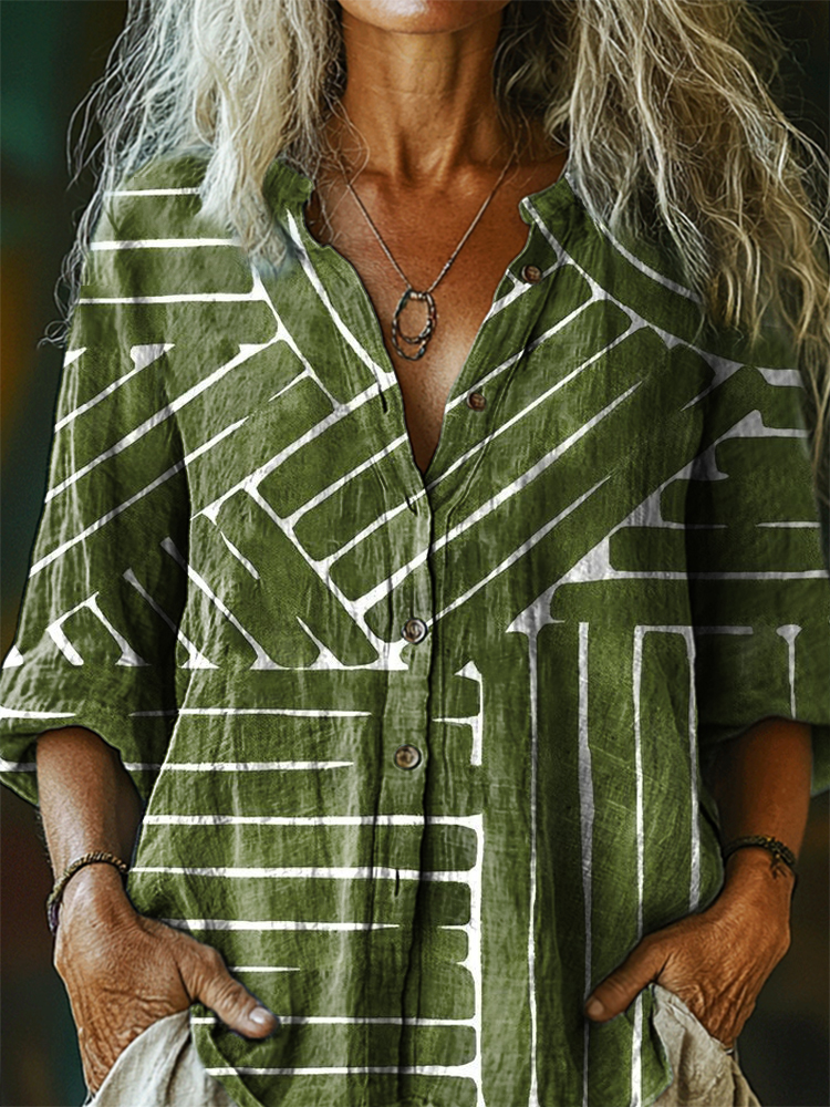 Women's Striped Tattoo Pattern Art Print Casual Cotton Linen Shirt