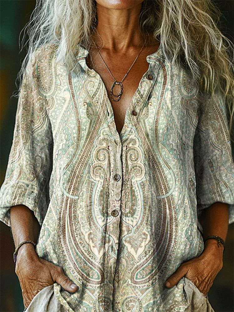 Women's Tattoo Pattern Art Print Casual Cotton Linen Shirt