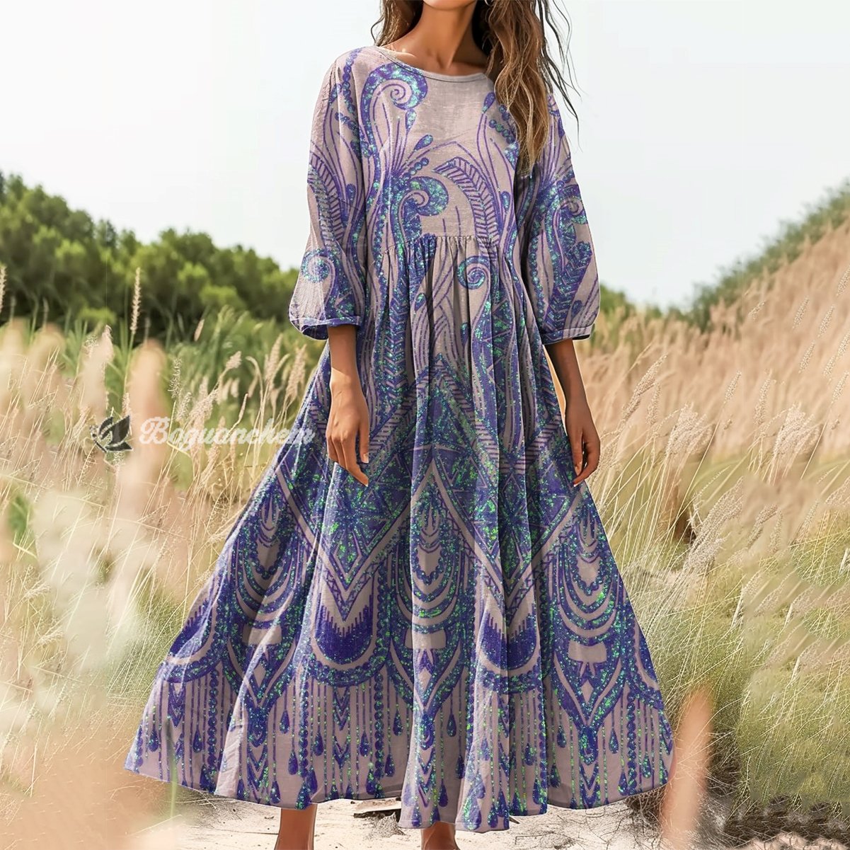Gender: For Women Style: Casual Fit Type:FIt Shirt Length: Regular Sleeves Length:3/4 Sleeve Collar: Round Collar Material: 100%Cotton Material Stretch: No Stretch Pocket :Side poctket Weight: 0.300kg Package:1 x Dress