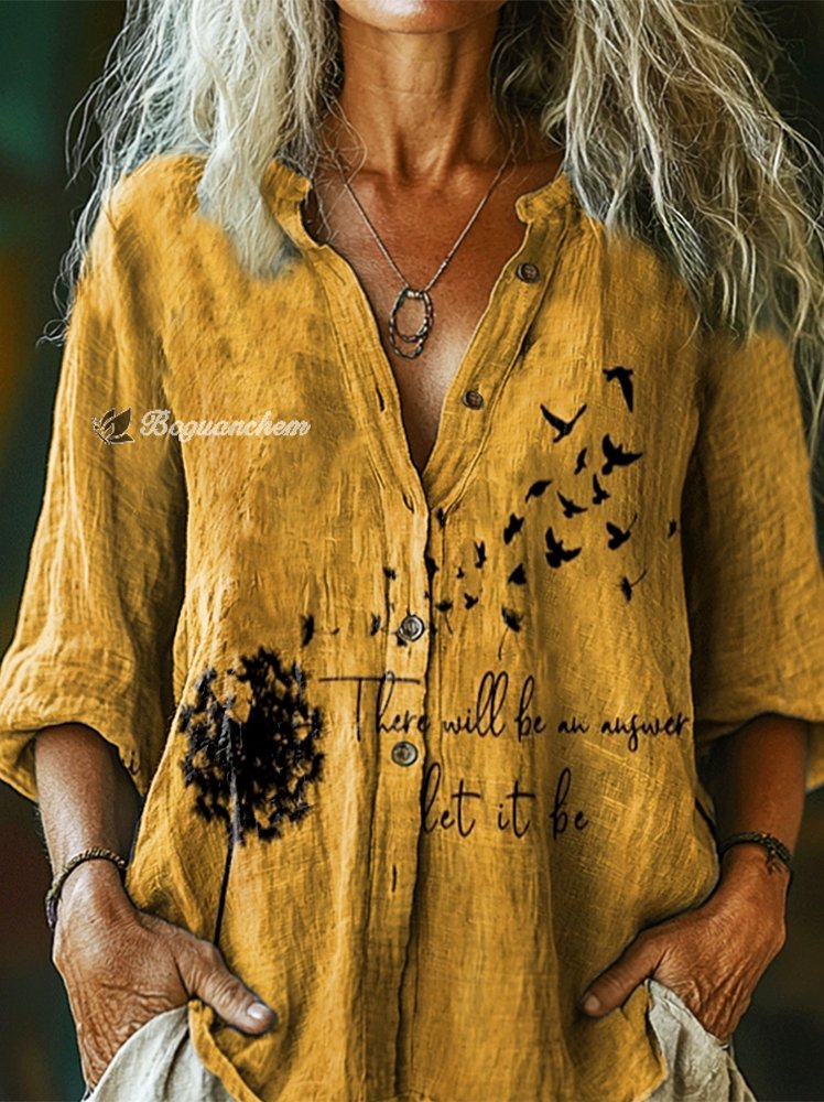 Women's There Will Be An Answer Print Casual Cotton Linen Shirt