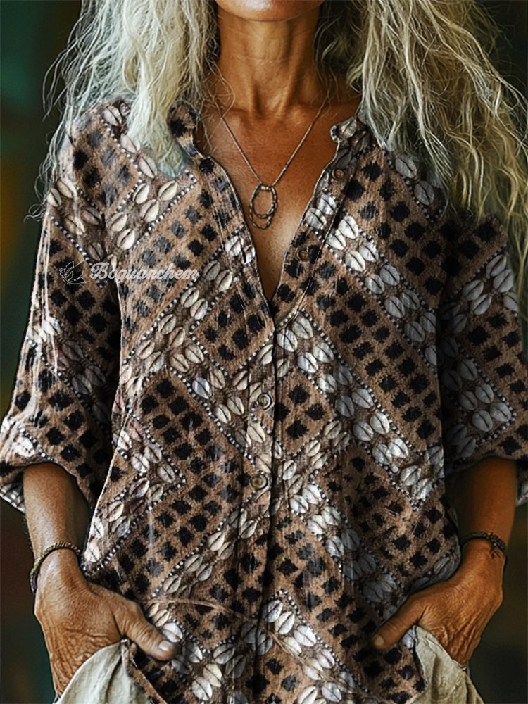 Women's Vintage Bohemian Pattern Art Print Casual Cotton Linen Shirt