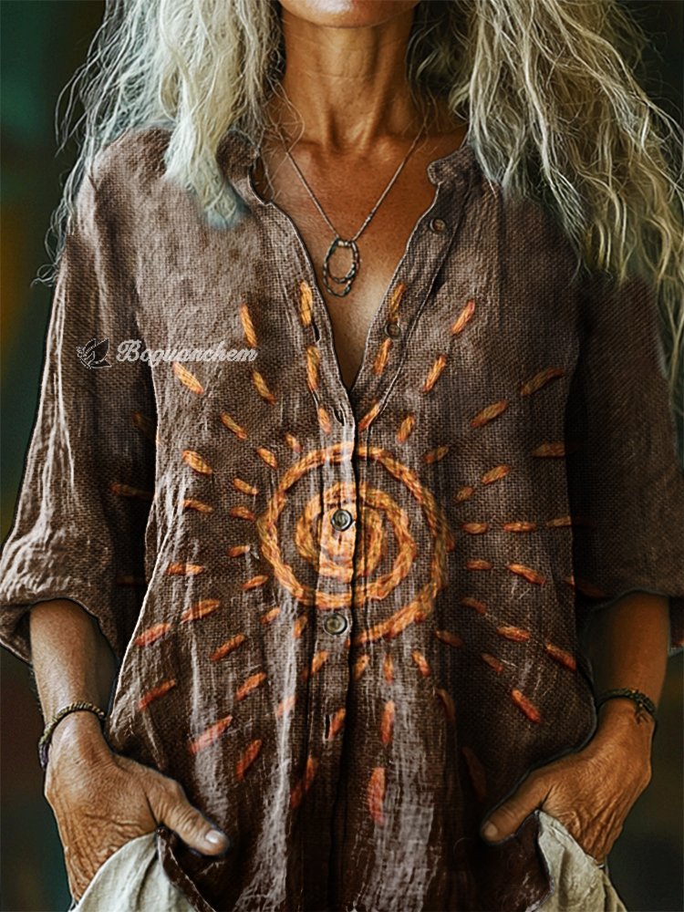 Women's Vintage Bohemian Pattern Art Print Casual Cotton Linen Shirt