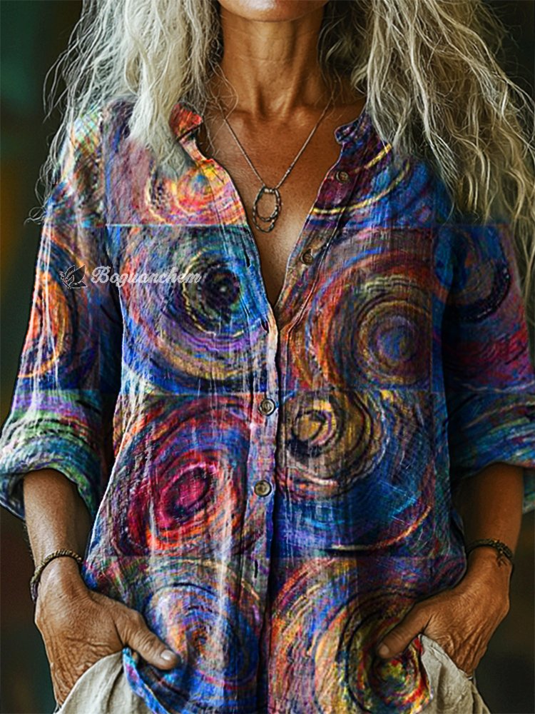 Women's Vintage Bohemian Totem Art Print Casual Cotton Linen Shirt