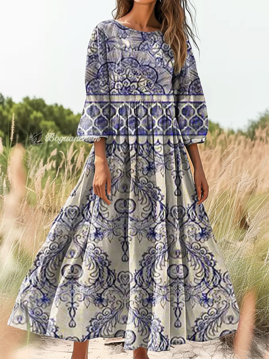 Gender: For Women Style: Casual Fit Type:FIt Shirt Length: Regular Sleeves Length:3/4 Sleeve Collar: Round Collar Material: 100%Cotton Material Stretch: No Stretch Pocket :Side poctket Weight: 0.300kg Package:1 x Dress