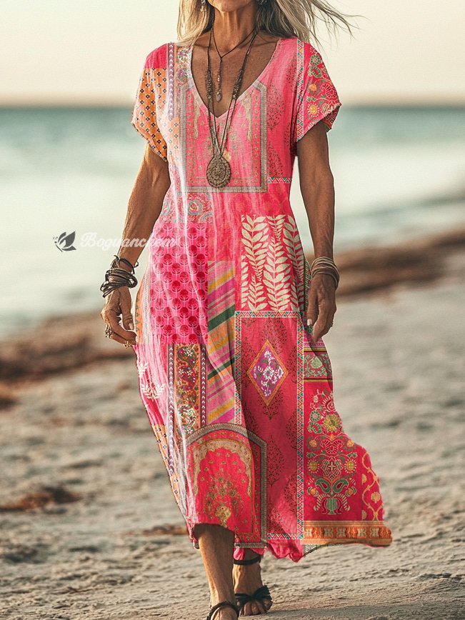 Gender: For Women Style: Casual Fit Type:FIt Shirt Length: Regular Sleeves Length: Short Sleeve Collar: V-Collar Material:Cotton Material Stretch: No Stretch Pocket :Side poctket Weight: 0.300kg Package:1 x Dress