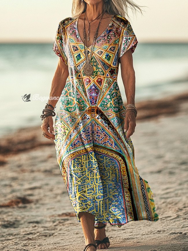 Gender: For Women Style: Casual Fit Type:FIt Shirt Length: Regular Sleeves Length: Short Sleeve Collar: V-Collar Material:Cotton Material Stretch: No Stretch Pocket :Side poctket Weight: 0.300kg Package:1 x Dress