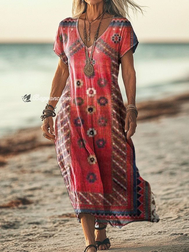 Gender: For Women Style: Casual Fit Type:FIt Shirt Length: Regular Sleeves Length: Short Sleeve Collar: V-Collar Material:Cotton Material Stretch: No Stretch Pocket :Side poctket Weight: 0.300kg Package:1 x Dress