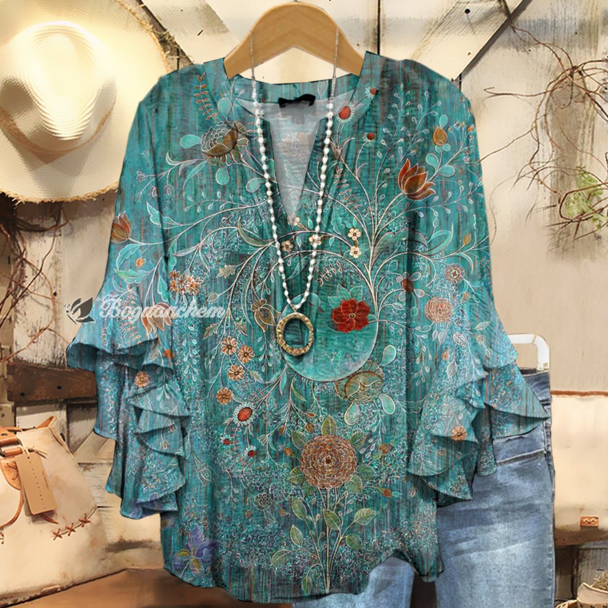 Women's Vintage Floral Art Print Casual Cotton And Linen Shirt