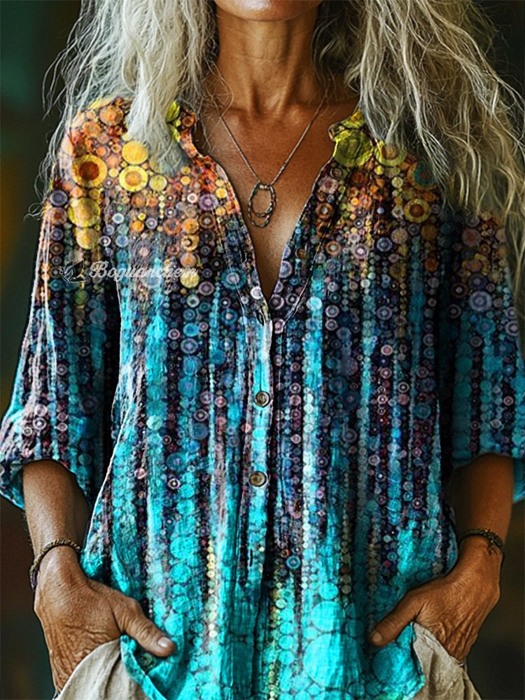Women's Vintage Floral Art Print Casual Cotton Linen Shirt