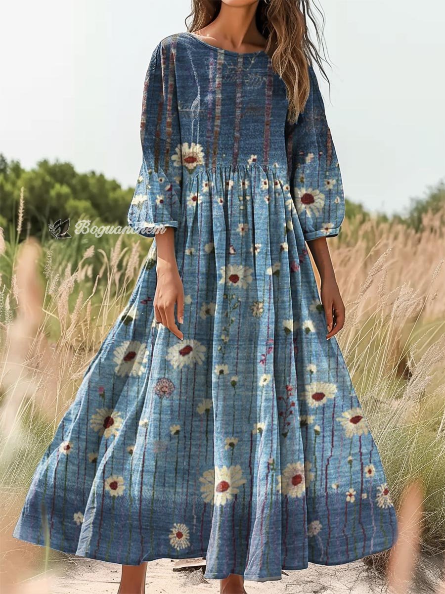 Gender: For Women Style: Casual Fit Type:FIt Shirt Length: Regular Sleeves Length:3/4 Sleeve Collar: Round Collar Material: 100%Cotton Material Stretch: No Stretch Pocket :Side poctket Weight: 0.300kg Package:1 x Dress