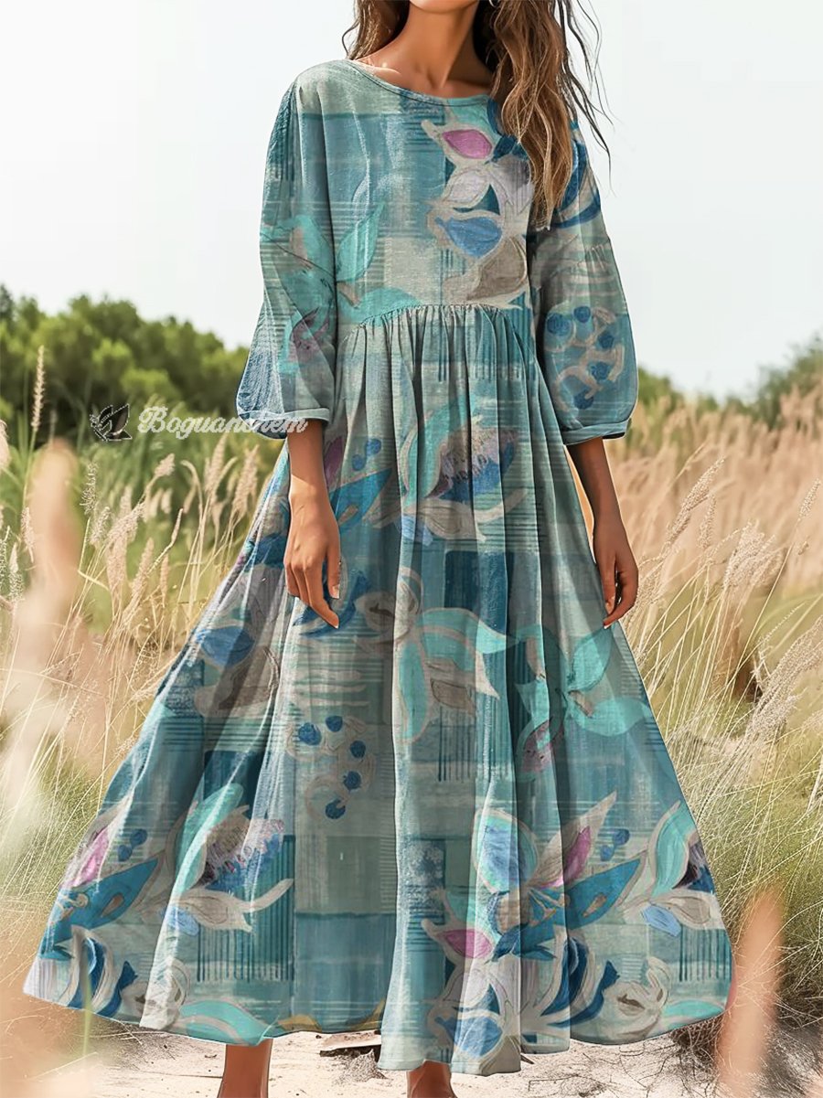 Gender: For Women Style: Casual Fit Type:FIt Shirt Length: Regular Sleeves Length:3/4 Sleeve Collar: Round Collar Material: 100%Cotton Material Stretch: No Stretch Pocket :Side poctket Weight: 0.300kg Package:1 x Dress