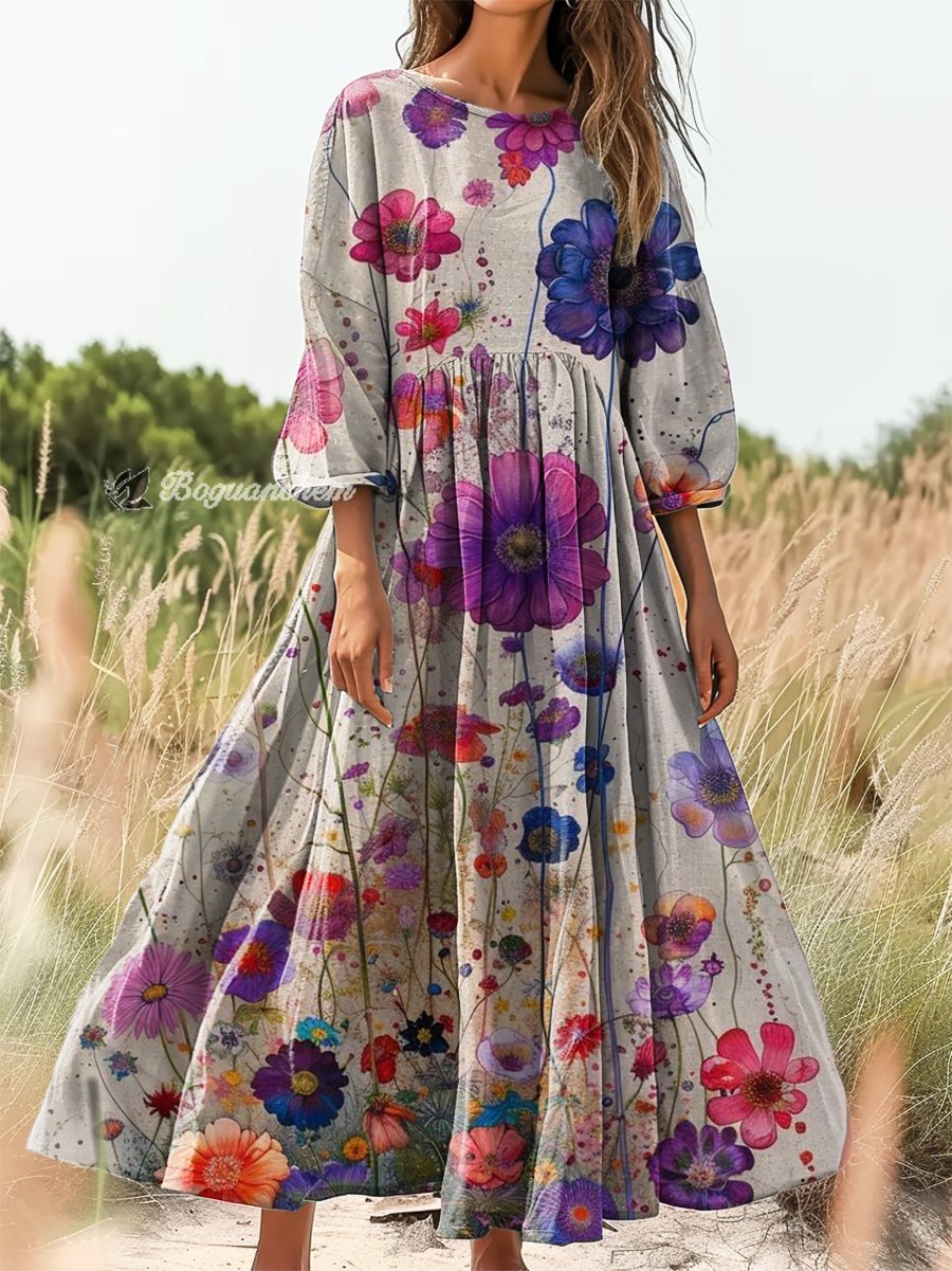 Gender: For Women Style: Casual Fit Type:FIt Shirt Length: Regular Sleeves Length:3/4 Sleeve Collar: Round Collar Material: 100%Cotton Material Stretch: No Stretch Pocket :Side poctket Weight: 0.300kg Package:1 x Dress
