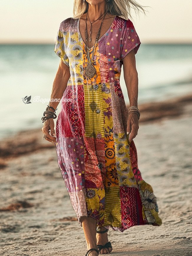 Gender: For Women Style: Casual Fit Type:FIt Shirt Length: Regular Sleeves Length: Short Sleeve Collar: V-Collar Material:Cotton Material Stretch: No Stretch Pocket :Side poctket Weight: 0.300kg Package:1 x Dress