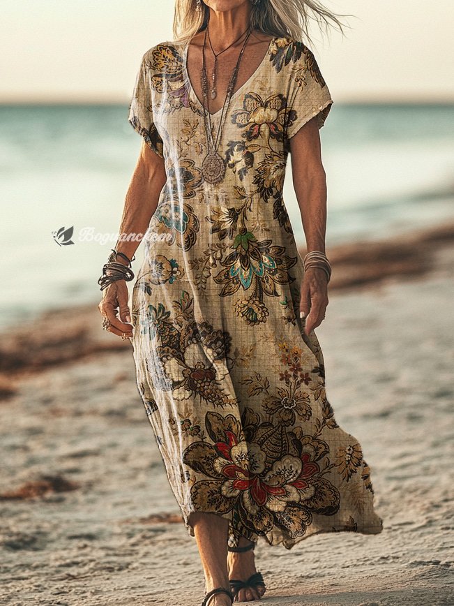 Gender: For Women Style: Casual Fit Type:FIt Shirt Length: Regular Sleeves Length: Short Sleeve Collar: V-Collar Material:Cotton Material Stretch: No Stretch Pocket :Side poctket Weight: 0.300kg Package:1 x Dress