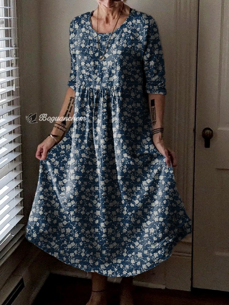 Gender: For Women Style: Casual Fit Type:FIt Shirt Length: Regular Sleeves Length: Long Sleeve Collar: Round Collar Material:Cotton+Linen Material Stretch: No Stretch Pocket :side poctket Weight: 0.300kg Package:1 x Dress