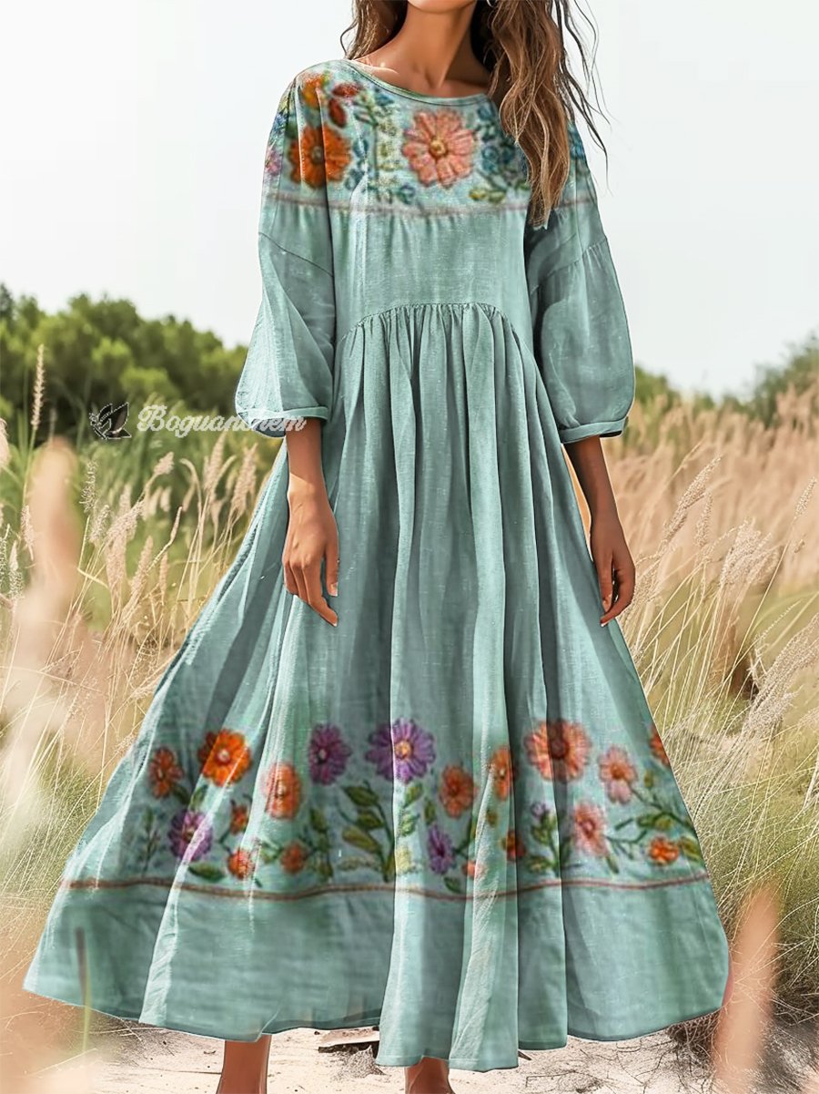 Gender: For Women Style: Casual Fit Type:FIt Shirt Length: Regular Sleeves Length:3/4 Sleeve Collar: Round Collar Material: 100%Cotton Material Stretch: No Stretch Pocket :Side poctket Weight: 0.300kg Package:1 x Dress