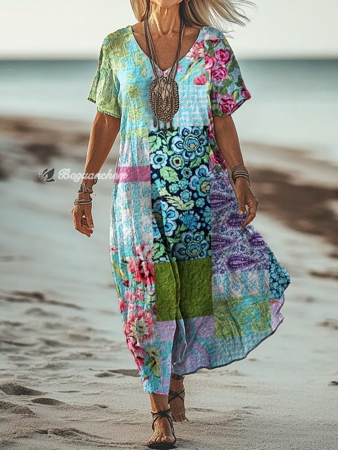 Gender: For Women Style: Casual Fit Type:FIt Shirt Length: Regular Sleeves Length: Short Sleeve Collar: V-Collar Material:Cotton Material Stretch: No Stretch Pocket :Side poctket Weight: 0.300kg Package:1 x Dress