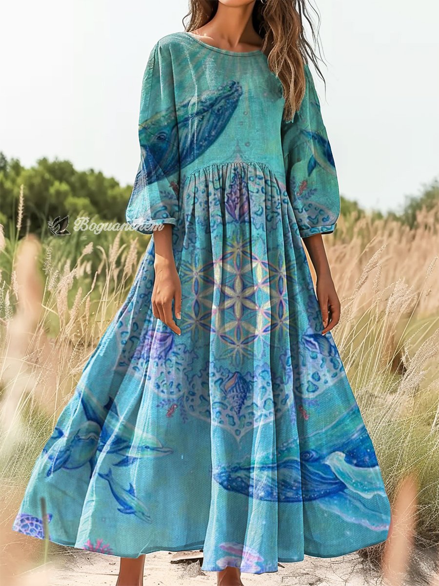 Gender: For Women Style: Casual Fit Type:FIt Shirt Length: Regular Sleeves Length:3/4 Sleeve Collar: Round Collar Material: 100%Cotton Material Stretch: No Stretch Pocket :Side poctket Weight: 0.300kg Package:1 x Dress