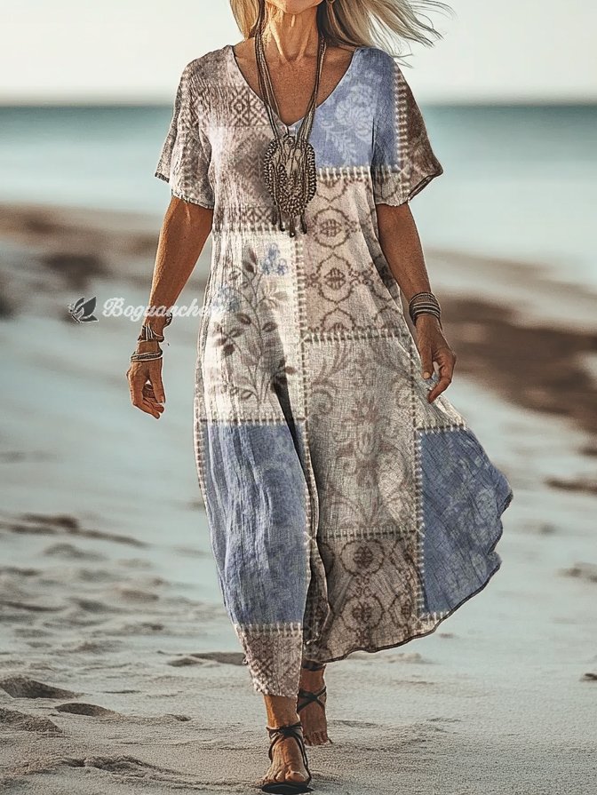 Gender: For Women Style: Casual Fit Type:FIt Shirt Length: Regular Sleeves Length: Short Sleeve Collar: V-Collar Material:Cotton Material Stretch: No Stretch Pocket :Side poctket Weight: 0.300kg Package:1 x Dress