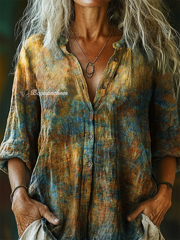 Women's Vintage Pattern Art Print Casual Cotton Linen Shirt